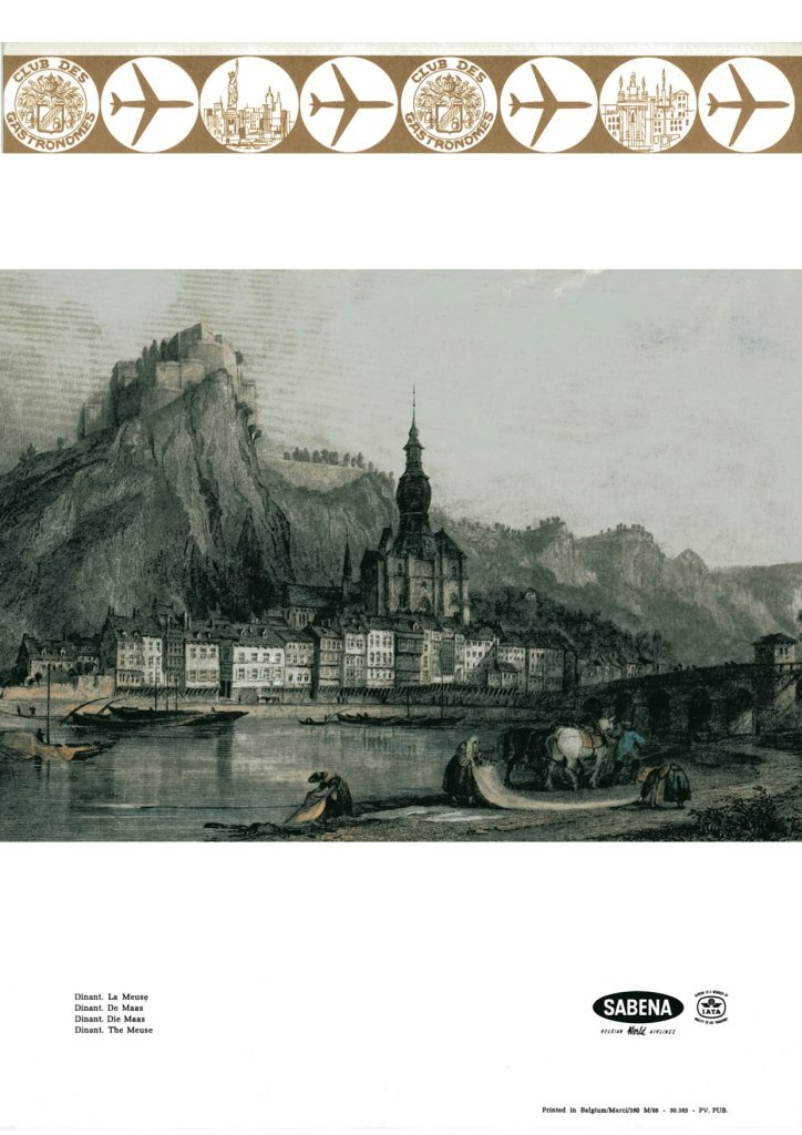 Op de vluchten van Sabena tussen Brussel en New York werd in de jaren ’70 een gastronomisch menu gepresenteerd door ‘de club des gastronomes’ met op de voorkaft van het menu een kleurtekening van de citadel van Dinant.