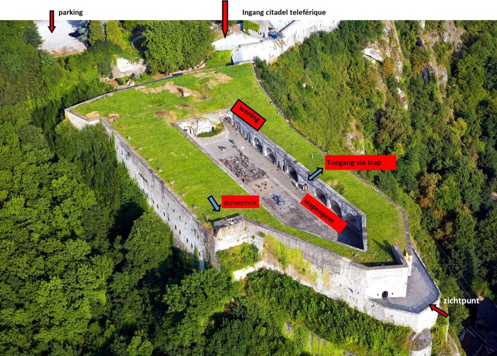 De rondgang leidt langs het munitiedepot, de slaapvertrekken van de soldaten, de infirmerie, het cachot, de bakkerij, de smederij, het enig mooie uitzichtpunt 100 m boven de Maas, de wapenzaal en museum, de guillotine, en eindigt in de kunstmatig nagemaakte scheefgezakte bunker die altijd voor de nodige hilariteit zorgt en de kans biedt hiervan een mooie herinneringsfoto te kopen.