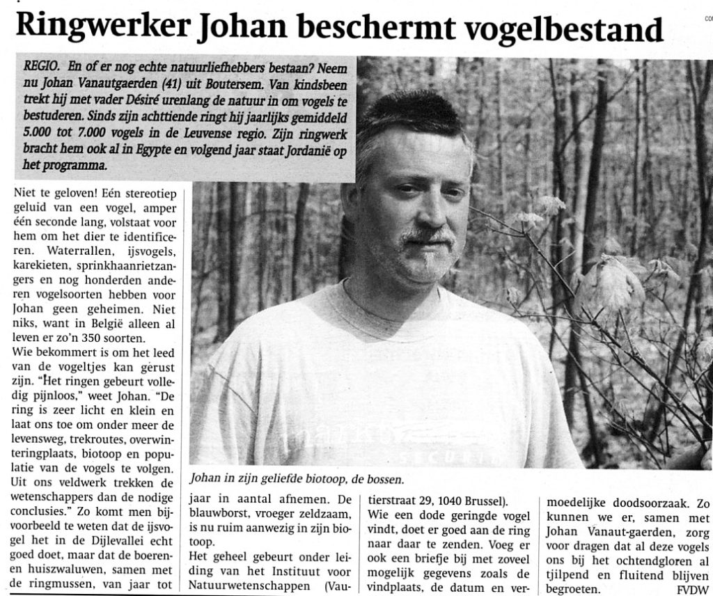 Johan is verantwoordelijke voor de ringgroep Leuven die een tiental ringers telt.
