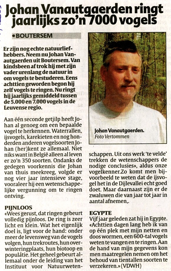 Enkele ‘speciallekes’ van Johan: Een Roodkeelpieper geringd in Bierbeek, Noordse Nachtegaal geringd in Korbeek-Lo, Verschillende witkopstaartmezen geringd in Begijnendijk, Een Raddes boszanger geringd in Korbeek-Lo, hij is een broedvogel van de Siberische vlaktes en bossen. In West-Europa komt hij hooguit voor als zeldzame dwaalgast.