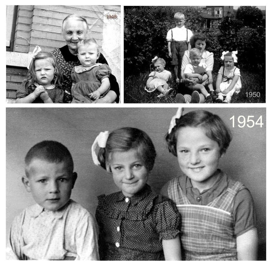 Theo, Clairette en Marie-Louise en in 1950 Moeder Julia en Julien, Herman, Clairette en Marie-Louise.