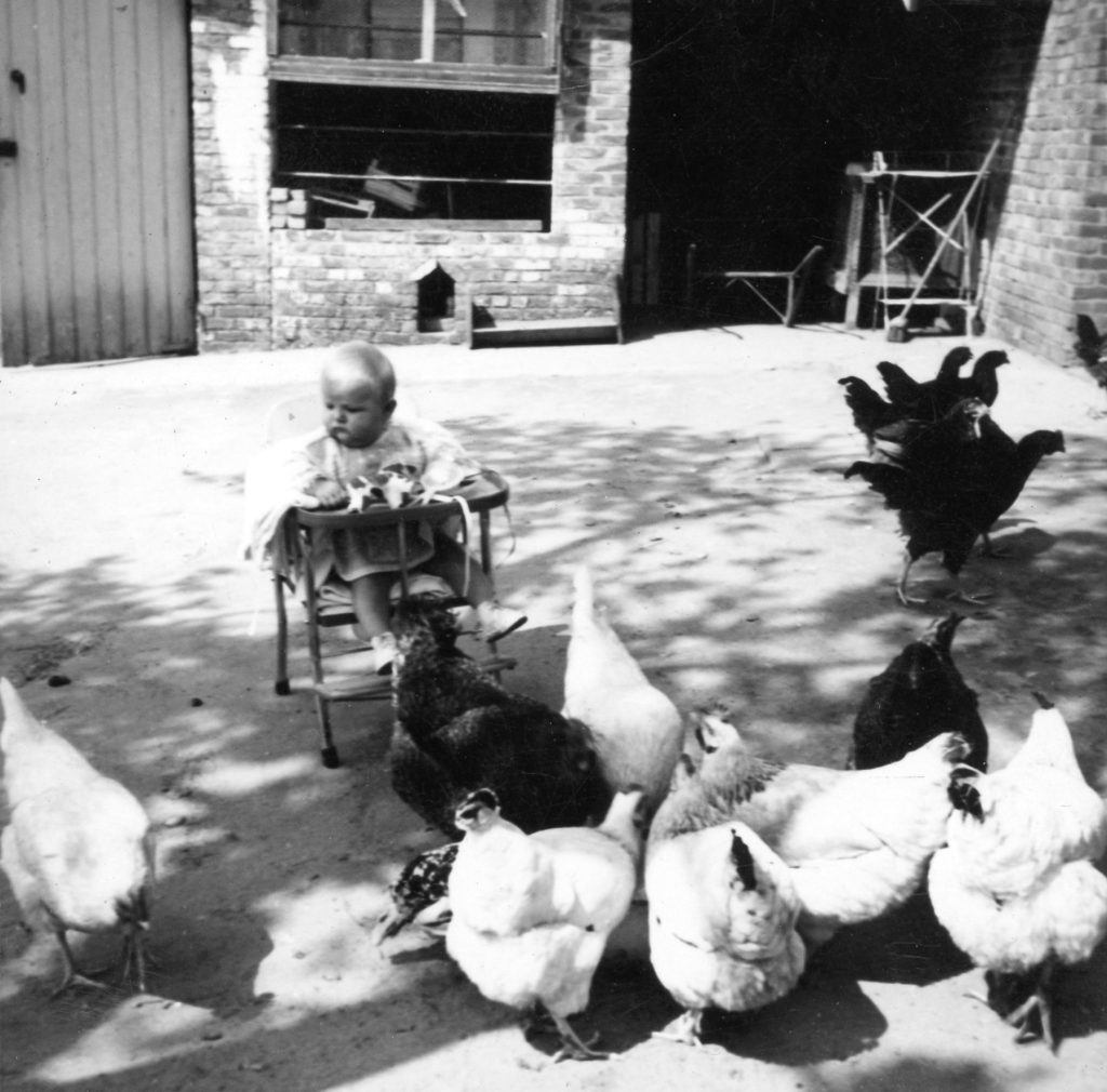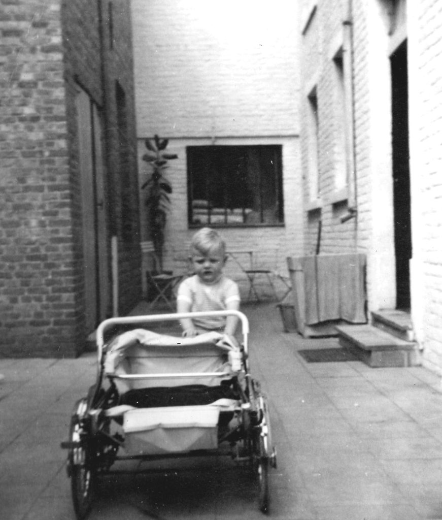 1947 de binnenkoer met links de nieuwbouw en Julien achter de ‘pousette’.
