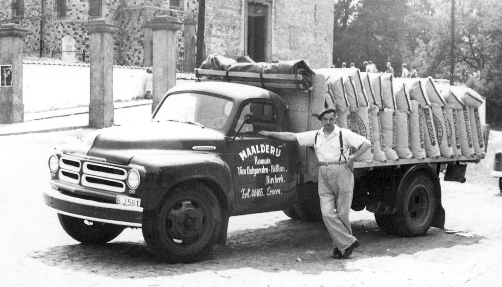 Met deze camion werd enorm veel arbeid verricht. Normaal was de laadbak voorzien voor 4 ton maar in het oogstseizoen werd er soms wel 6 ton graan van het veld bij de boeren gehaald. Wekelijks werden,meestal op zaterdag, drie rondes afgewerkt voor het leveren van de veevoeders van Hungaria en het maalsels van de molen. Dit ging via de Processieweg en Meren, (3 café’s) naar Mollendaal (1 café)en naar de Brempt (2 café’s) en zo werd met een regelmaat onze dorst gelest met een Stella.