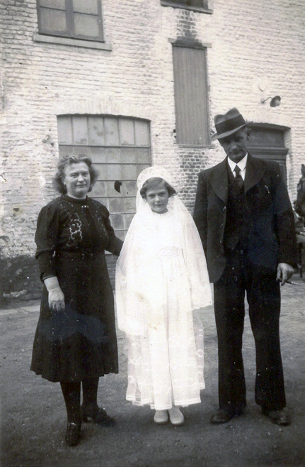 1950 Plechtige communie van Raymond met zijn meter en peter.